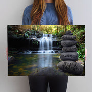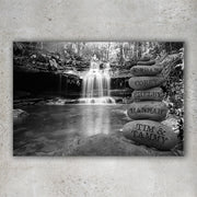 Personalized Waterfall Forest Canvas Wall Art - Engraved Names on Stacked Stones
