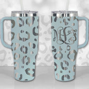 Personalized 40 oz Tumbler with Handle - Leopard Print Monogram or Name