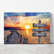 Personalized Family Name Sign Wall Art - Ocean Dock at Sunset Canvas