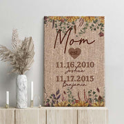 Brighten Mom or Grandma's space with our Rustic Sunflowers Canvas Print—a personalized and heartwarming tribute. Adorned with charming sunflowers on a burlap print, customize with her name and established date for a truly special touch. Add the names and birthdays of all her children, turning this canvas into a beautiful representation of family love. This thoughtful piece is a perfect gift or a delightful addition to her decor, celebrating the beauty of blooming family bonds.