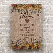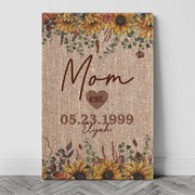Personalized Grandma / Mom Mother & Child Established Sunflower Burlap Rustic Canvas Art