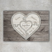 Personalized Family Love Name Wood Heart Puzzle - Canvas Wall Art