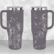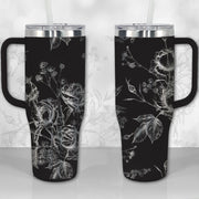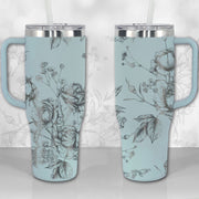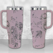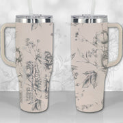 40 oz Tumbler with Handle - Wild Roses and Flowers Line Art Pattern