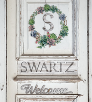 Canvas Wall Decor - Custom Monogram Succulent Wreath on Weathered Wood Door