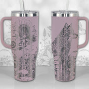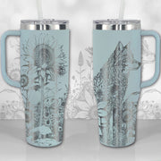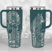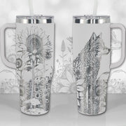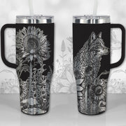 40 oz Tumbler with Handle - Wolf and Sunflowers