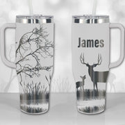 Personalized 40 oz Tumbler with Handle - Deer Hunter Dad / Papa / Custom